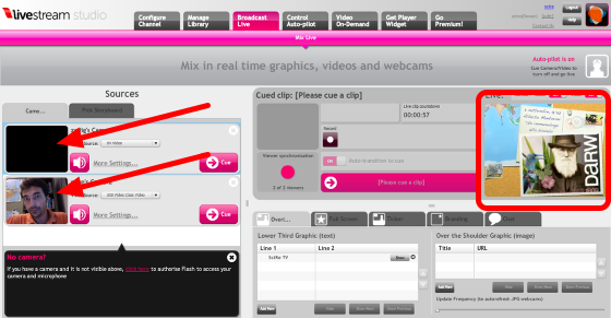You can choose your video (1) and audio (2) source (webcam, camcorder, external microphone etc). It's pretty simple.